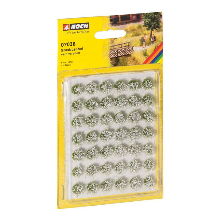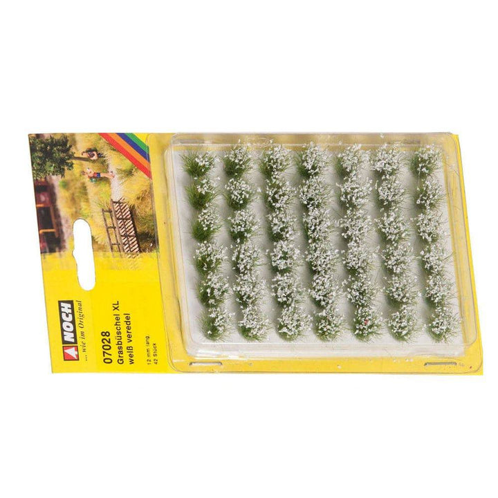 The Colours of the Summer. The popular NOCH Grass Tufts are ideal for decorating your model landscape. Whether you wish to re-create forest edges, meadows, railway embankments, flower beds, industrial wasteland, gravel paths, parking places, gateways, sidewalks, etc., the Grass Tufts always find a home, and add an even more realistic touch to your layout. The NOCH assortment contains a large selection of grass tufts and grass strips. Thanks to the innovative packaging, the grass blades are standing upright. The tufts are easy to remove of the blister and can be planted directly into the landscape. We recommend one drop of universal adhesive or hot glue on the grass tufts before placing them directly on the preferred surface.