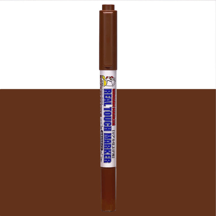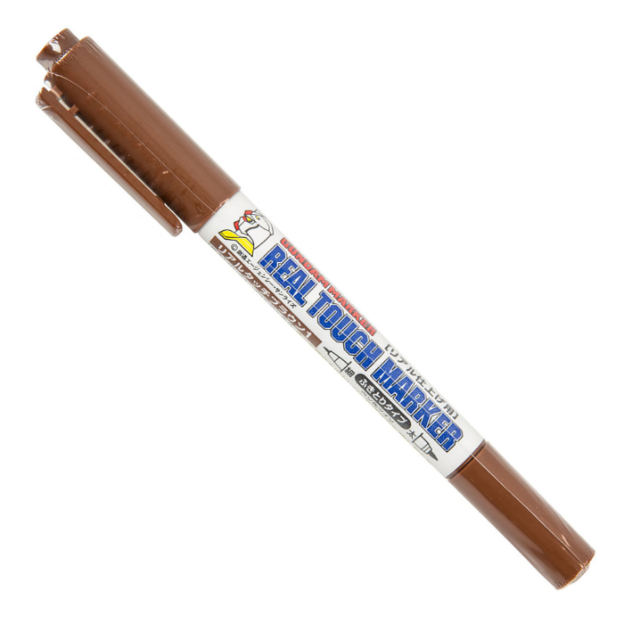 GM407 Brown Real Touch Gundam Marker is an easy alternative to brush painting. Each Gundam marker has paint inside that is designed to go directly on the plastic model. Gundam markers come in various sizes and colors making them perfect for small detailing to paint whole parts. To use the markers, the pen needs to be shaken so that the paint inside is mixed and then pressed down on the marker time several times to allow the paint to flow through the pen nip. Since Gundam Markers are basically like paint, sometimes they need to be coated a few times for an even-looking paint job. It is recommended to let the paint cure for a few hours and topcoat it.
