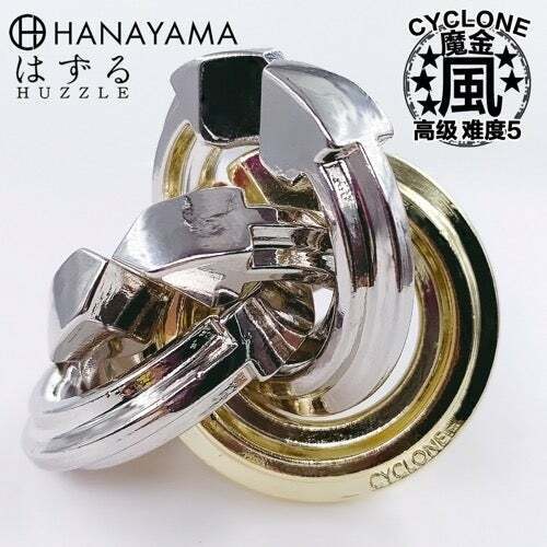Cast Cyclone is a puzzle in which each piece interlocks with the other three. While all the pieces initially look the same, there are in fact two different kinds of pieces. The design of each ring has been carefully calculated, highly restricting the amount of possible movement and creating an extremely puzzling puzzle the pinnacle of a long line of challenging puzzles created by a master puzzler.