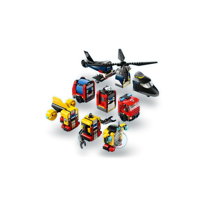 - Toy firetruck, helicopter and submarine building set – Triple the excitement with the LEGO® City Helicopter, Fire Truck & Submarine Remix set for kids aged 7 and up who love to build and create