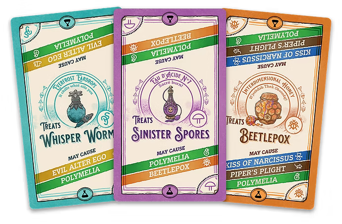 Hex Effects is a fiendishly fun “take that” card game about an amateur alchemist from the Medieval Ages who foolishly inflicts themself with Hexes. It features original artwork and easy-to-pick-up gameplay.