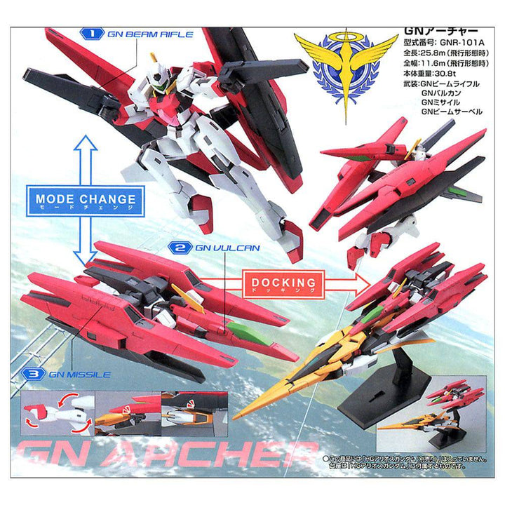 - Parts are also included to attach GN Archer's boosters to the back of HG 00 Gundam (also sold separately)