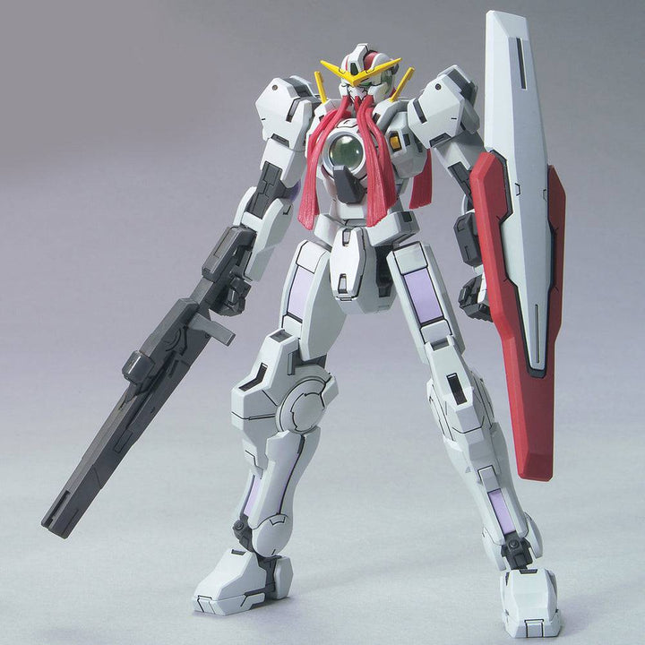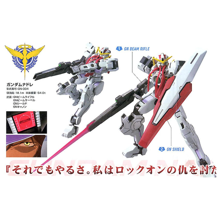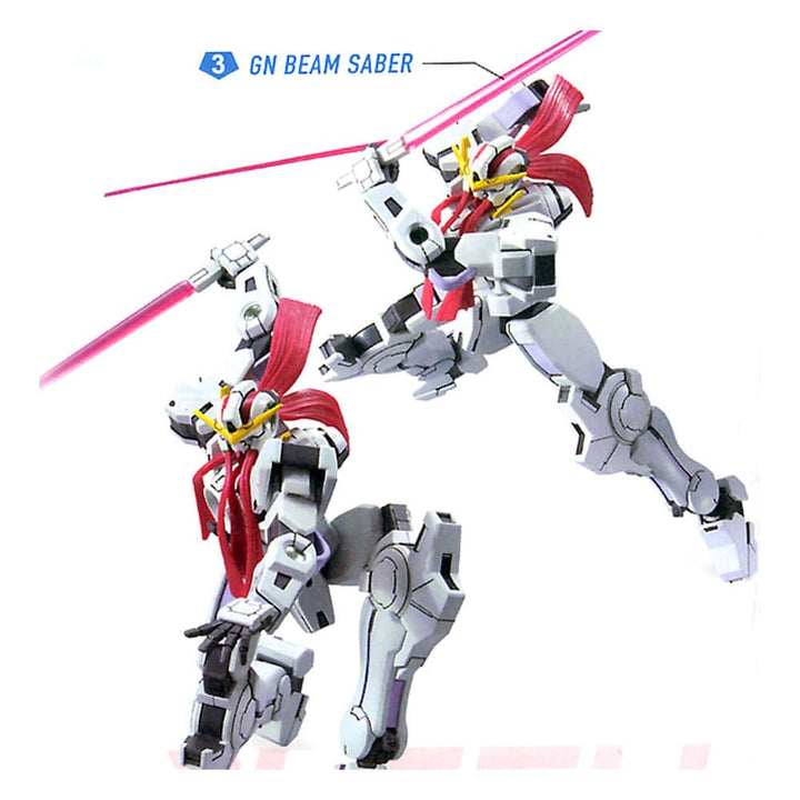 Gundam Nadleeh, the secret mobile suit that resides beneath Gundam Virtue's heavy armour, is offered in plastic kit form and will be fully articulated with polycap joints upon completion. It comes molded in colour and uses soft plastic for its hair-like connector cords. Weapons include a GN beam rifle with beam blade attachment, GN shield, and two GN beam sabers. It can also wield the two GN cannons that come with HG Gundam Virtue. A sheet of foil stickers is included for detail. Not a drop of glue or paint required, although painting it would add a more realistic appearance.