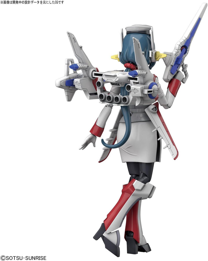 Part of a subline called GunPla'Cos Heroines, items feature GunPla based on characters from the Build Fighters series. Mrs. Loheng-Rinko is based Rinko Iori, the main character's mother in the first "Gundam Build Fighters" TV series. Her backpack equipment and battle attire are based on the Archangel from "Gundam SEED" recognizing a Gundam in-joke that Rinko Iori and Murrue Ramias, the captain of the Archangel are voiced by the same actress!