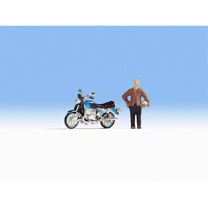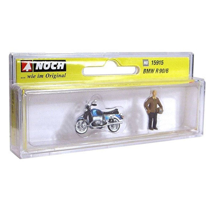 Enjoy Your Sunday Ride! Some Motorbikes of the Classic-Bikes Series are now available with matching motorcyclists. Enjoy a Sunday afternoon ride with the Classic Bike Club. Noch Classic Bikes in 1:87 scale are a very realistic and faithful reproduction from real classic motorcycles. The models are ideal for collecting and for placing on the layout. The series of classic bikes embrace 12 different models. Six out of twelve models are even available with the compatible motorcyclists. Many of the classic bike models originate from the eras II and III. Therewith it is even easier to represent the construction and diorama.The BMW R90/6 and the sport model BMW R90S form a range of boxer twin motorcycles that were manufactured in Berlin, Germany, by BMW from 1974 to 1976. The ""slash six"" models departed from the earlier ""slash five"" slightly. First, the smallest displacement changed from 500cc to 600cc. A sport model was offered, as were disc brakes (front only) for the first time. Additionally, the tank design was changed to remove the chrome trim panels (rubber knee pads were added instead), and the gauge pod was moved from the headlight housing to its own assembly over the housing.