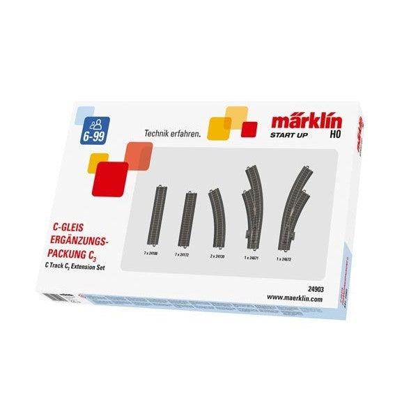 - Contents: 7x no. 24188 straight track, 7x no. 24172 straight track, 2x no. 24130 curved track, 1x no. 24671 curved turnout, 1x no. 24672 curved turnout, wire, plugs, connectors and instructions