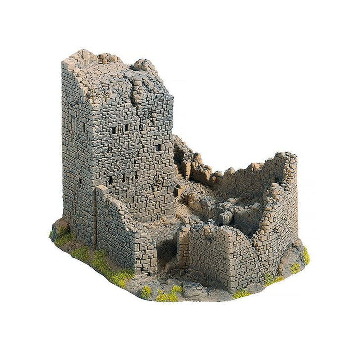 A mighty, historic castle tower, crumbling fortifications and a complete bailey are located on a floor space of just 18 cm x 14 cm.