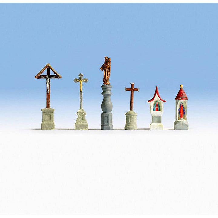 The Accessory Set "Christian Symbols" contains 6 different christian symbols, crosses and icons. Everyone who values a realistic design of themed sceneries, can find a lot of ideas in the NOCH product range: from a ice cream parlor to a service station for cars, from gravestones to accessories for beach scenes. Every set contains a variety of different accessories items, all matching the corresponding theme. Bring life to your model landscape with the NOCH Accessories Sets. Often the small details will have a great impact.