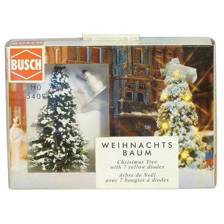 Add Christmas spirit to your layout or seasonal display with this working model. Fully assembled evergreen has a dusting snow on its branches and is prewired with seven yellow diodes. Operates on 14 - 16 V AC or DC.