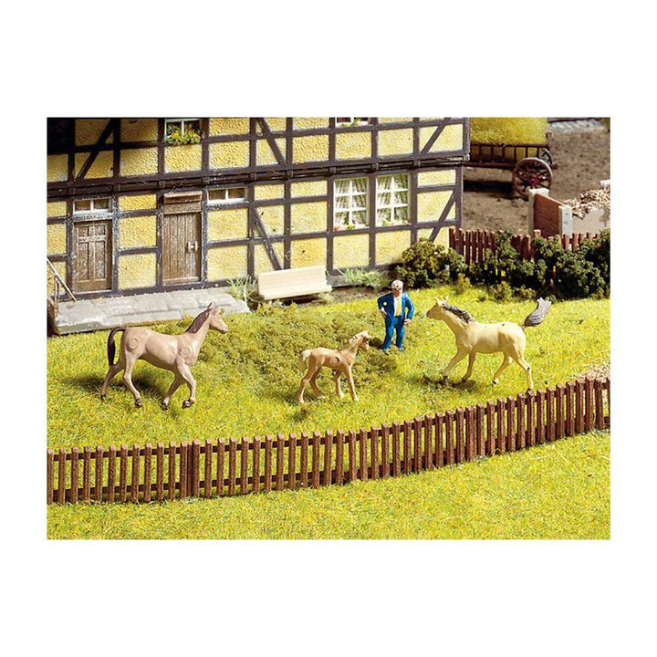 You will find a beautiful collection of 9 different hand-painted miniature fences modelled after various wooden fences in our product range. Due to their intricate colouring done by hand, they resembling the original to the last detail! The individual fences can be combined at will in order to create any fence line imaginable. There are straight elements, garden doors, entrances, dilapidated fence elements, and a lot more to discover. Some of the most beautiful fences are also available for the TT and N scale.