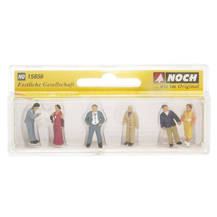 This group of figures from Noch are dressed in their finery and ready to attend whatever is the poshest event in your model railway layout or model village. Whether going to the ball, to a wedding or a film premiere, these guests are dressed for the occasion. Decorate your model railway layout with beautiful figures, such as warehousemen, carpenters, chimney sweepers and postmen, but also paramedics or policemen, who keep your model landscape in check. The assortment of figures leaves nothing to be desired and makes your landscape design a lot easier. Perfect for modelers who want to create realistic scenery and layouts be it for a model railway, architecture or any other scale model project layout.