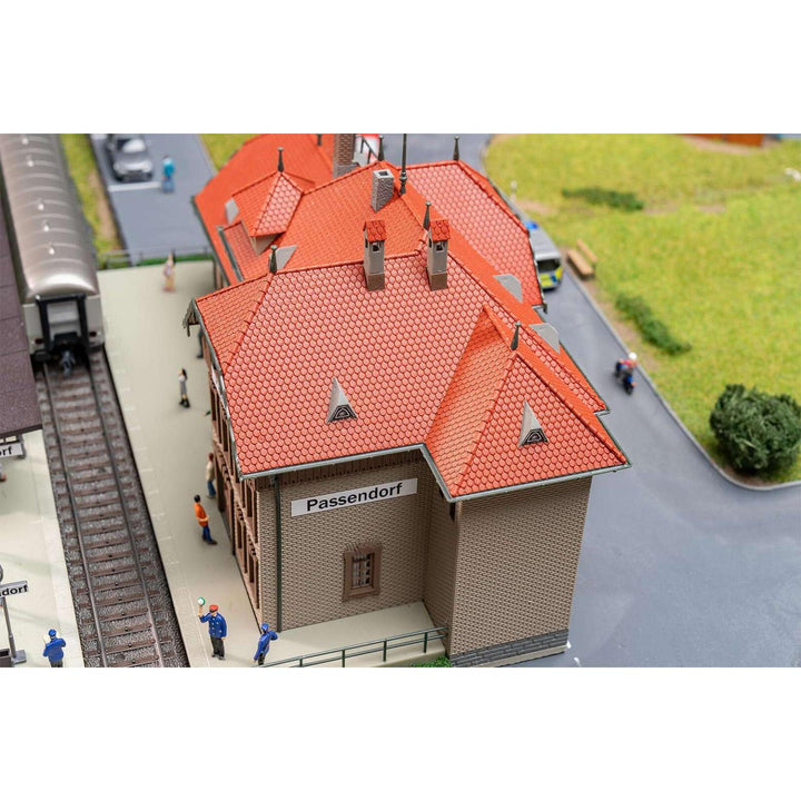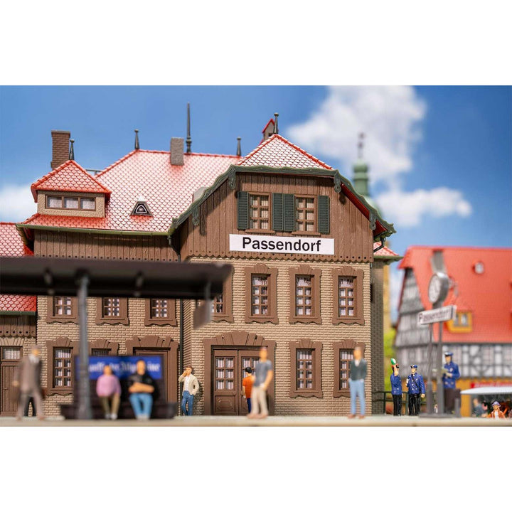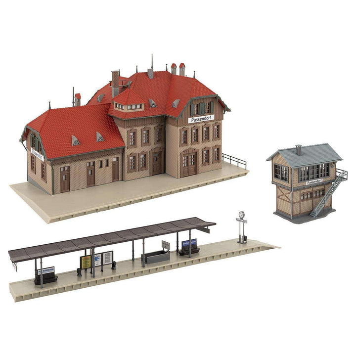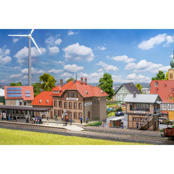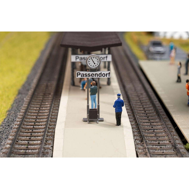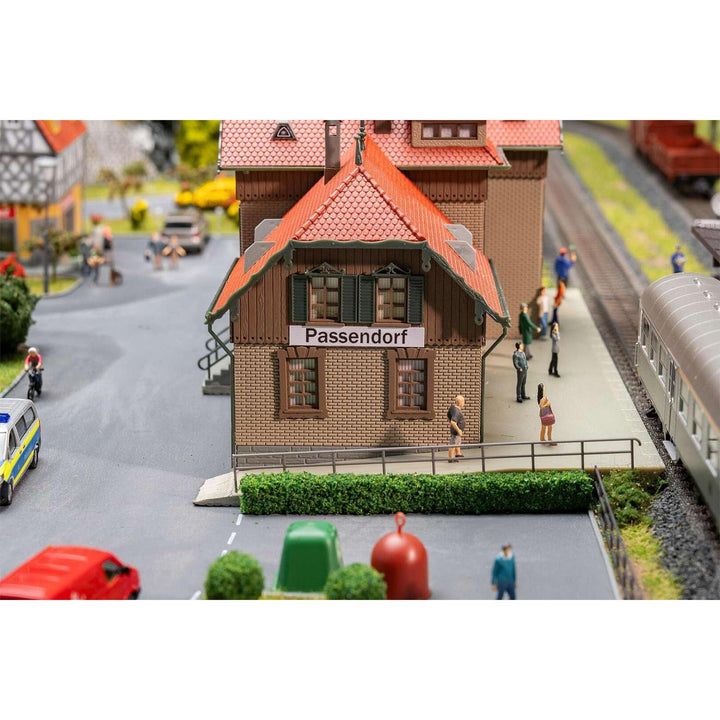Please board, the train is leaving! This set brings travel fever to life and with the detailed railway station and a designed, covered platform, populated with busy railway staff, the hustle and bustle on the track comes to life. An authentic stone signal box rounds off the scenery. Together, everything is perfect for embellishing the model railway and making it versatile. Get everything ready for departure into a miniature world full of adventure! Contents: Railway station, signal box, platform and railway staff.