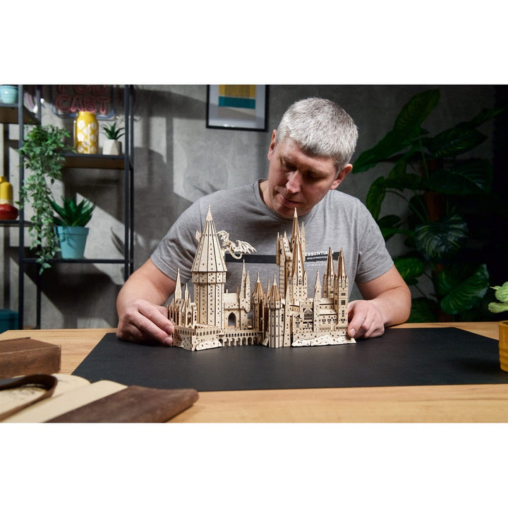 Enter a magical world as you build the majestic Hogwarts™ Castle from Ugears, a faithful recreation of the wizarding school as seen in the Harry Potter™ series of films. With its riot of towers and turrets, this static model with movable elements (including staircase and dragon's wings) will transport you to a place of intrigue and spells. The Hogwarts™ Castle, presented under special license from Warner Brothers, instantly becomes a classic in the Ugears collection of Harry Potter™ wooden DIY models, joining the Hogwarts Express™, Platform 9 ¾™, Quidditch™ Pinball, Knight Bus™, Flying Ford Anglia™, and Hagrid's Flying Motorbike™ with Sidecar.