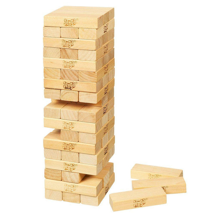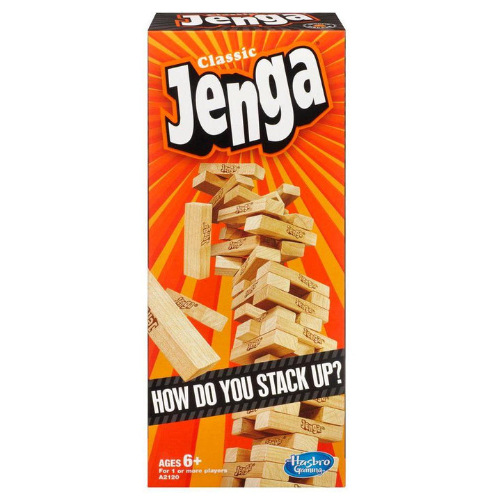 Want a game experience that combines friends, skill, suspense, laughter, and maybe a little luck? You gotta get the Classic Jenga game! It’s the perfect game for everyone, with edge-of-your-seat, gravity-defying action. Do you dive right in and pull your block, or take your time and study the stack? Any way you choose, show your Jenga style! How do you stack up? It’s a simple equation. Gather your friends together, throw in a lot of laughter and a little attitude, and get the Classic Jenga party started. Pull the block, stack it on top, and hope the tower doesn’t crash down! Classic Jenga is an easy game that you can play anytime, anywhere - and anyway you like. Whether you are serene, scientific, or sneaky when you choose your block, you’ll have fun. Be the life of your party with Classic Jenga!
