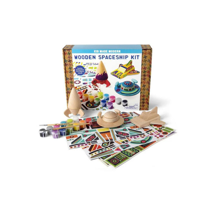 - Encouraging exciting, imaginative play, the Kid Made Modern Wooden Spaceship Kit comes with 3 customisable wooden spaceships in varying designs.