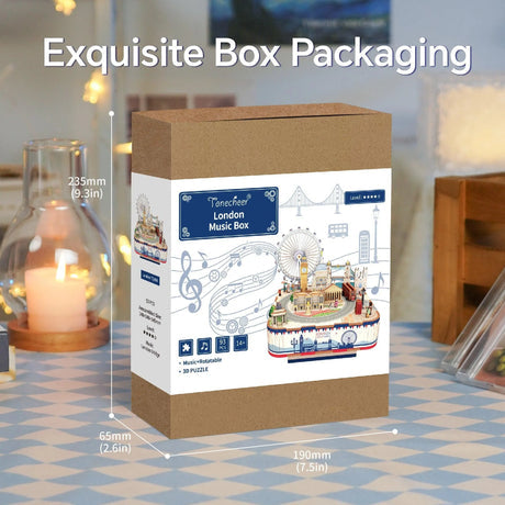 In this Tonecheer DIY music box kit, the classic yellow cab weaves in and out of the cluster of skyscrapers, taking visitors on a tour of New York's scenery. Brilliant Broadway theaters, the world-famous Statue of Liberty, the fully functional Campbell Sports Center and other New York landmarks you can see here.