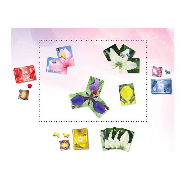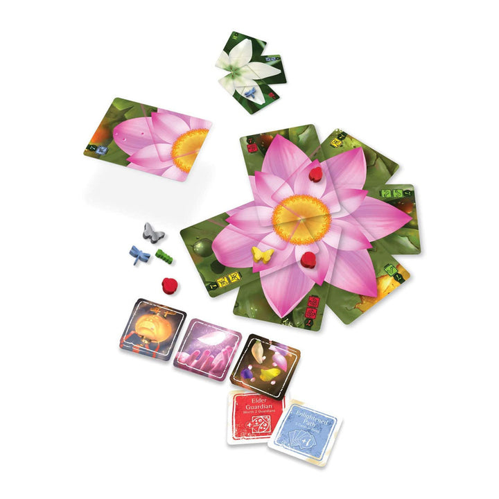 -Contents: 20 Wildflower Cards, 124 Petal Cards (31 per Player), 8 Insect Guardians, 4 Elder Guardians, 12 Special Power Tokens, 30 Scoring Tokens and 1 Rulebook