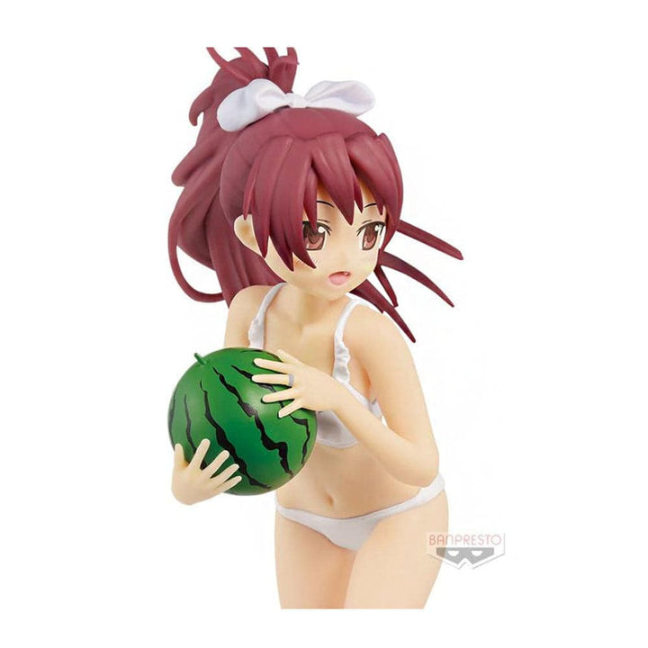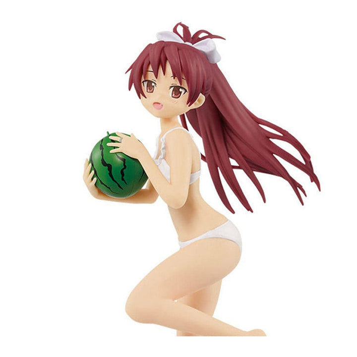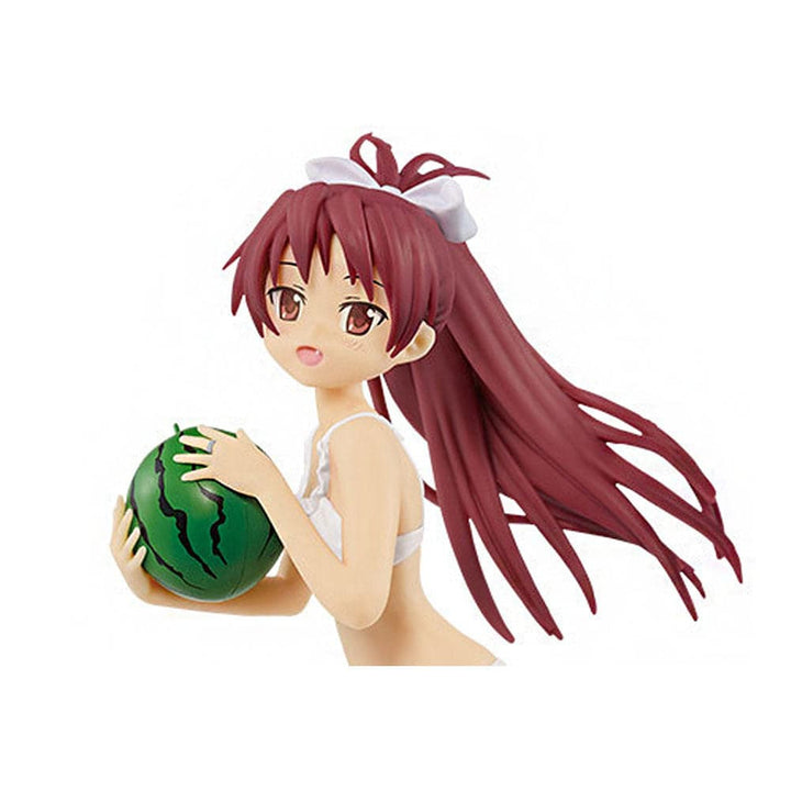 Boisterous Kyoko of Puella Magi Madoka Magica is taking a break from witch hunting for some watermelon. Standing at a height of 8.70 inches tall, this lovely Banpresto figure depicts her in a stylish white swimsuit with melon in hand in honor of her appearance in the movie Puella Magi Madoka Magica the Movie: Rebellion! A great looking figure with incredible detailed outfit.