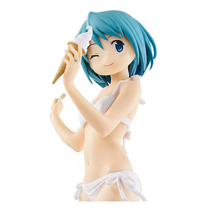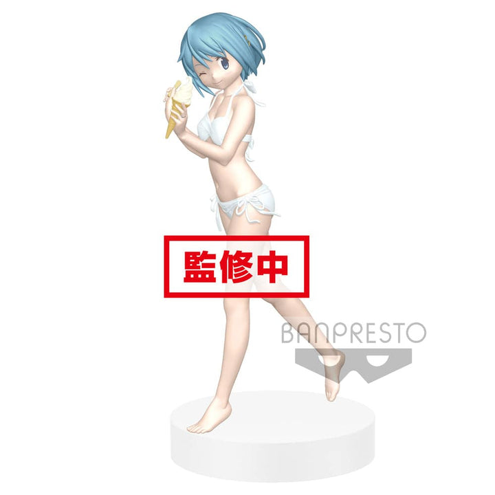 Sweet Sayaka Miki of Puella Magi Madoka Magica is taking a break from witch hunting for some ice cream. Standing at a height of 8.7 inches, this lovely Banpresto figure depicts her in a stylish white swimsuit with delicious-looking ice cream in hand in honor of her appearance in the movie Puella Magi Madoka Magica the Movie: Rebellion!