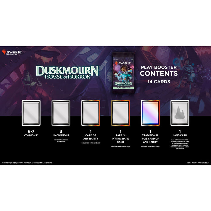 - 36 Duskmourn: House of Horror Play Boosters; each Play Booster contains 14 Magic: The Gathering cards