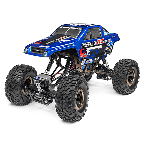 The Maverick Scout RC is superbly outfitted for off-road adventure, no matter where you want to go! With the extra-low 1:48 gearing thanks to its tough sealed transmission & differential and the superb traction and grip from the large tires, the Scout is a great truck for climbing, crawling and trail driving whether you want to leave it completely stock or completely customize it. The solid axle 4-link suspension is fitted with extra-long, oil-filled dampers and aluminum links give the Scout over 6 inches (14.5cm) of travel at each wheel for over 80 degrees of articulation between the front and rear axle. This lets you easily get over tall, seemingly impossible obstacles! Finally, the powerful 9kg steering servo lets you get around the toughest obstacles, no matter whether they're ultra-grippy dry granite rocks or a group of moss-covered tree roots. Maverick Scout RC Features: Fully built, competition ready rock crawler truck All-new body paint scheme New metal accent color for instant cool looks Tough & efficient 4wd shaft drive train with extra-low gear ratio 2.4Ghz radio system Radio transmitter features EPA and dual rate adjustments plus drop-down foam-covered steering wheel Built-in radio failsafe Fully waterproof radio receiver 9Kg high torque water-resistant steering servo 35-turn sealed motor for extreme climbing torque Fully waterproof speed controller Battery box with hook and loop straps fits all standard 6-cell batteries 4-link suspension front and rear Aluminum suspension links for easy sliding over obstacles Extra-long, oil-filled rebuildable composite shocks Over 6 inches (14.5cm) of suspension travel at over 80 degrees articulation! Progressive shock springs for enhanced off-road performance Titanium anodized aluminum shock caps Centrally mounted sealed heavy duty transmission Super-low 1:48 gear ratio for high torque Full-time 4WD shaft drive Updated central slider-type drive axles Locked gear diffs front and rear for extreme climbing power Extra-tough steel axles Front and rear solid molded axles Compact twin vertical plate chassis Drivetrain fully equipped with ball bearings 2.2 inch beadlock wheels Universal 12mm hex adapters fit any aftermarket wheels Medium compound crawler tires offer all-around performance and durability Pre-painted competition style rock crawler body Universal voltage wall charger included Maverick 2000mAh NiMH battery included Ready-To-Crawl straight from the box! Includes: 7.2V 1800mAh Ni-MH battery stick pack Multi-region wall battery charger Specifications: Length: 440mm Width: 255mm Height: 255mm Wheelbase: 305mm Items Required: 4 x AA Batteries