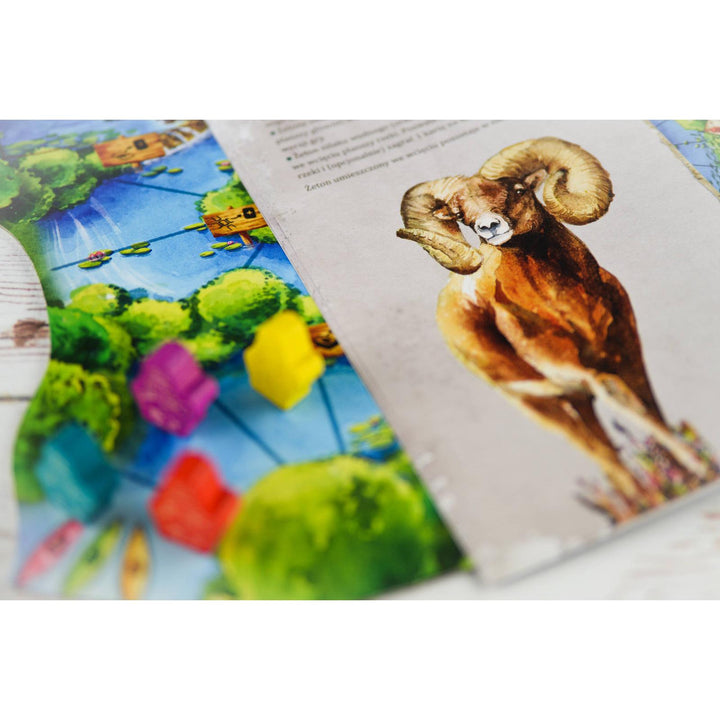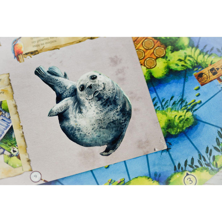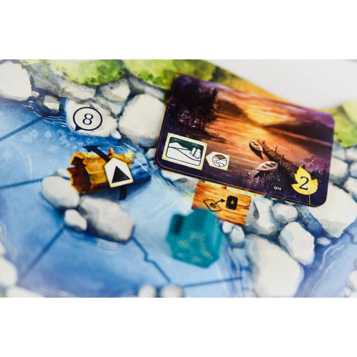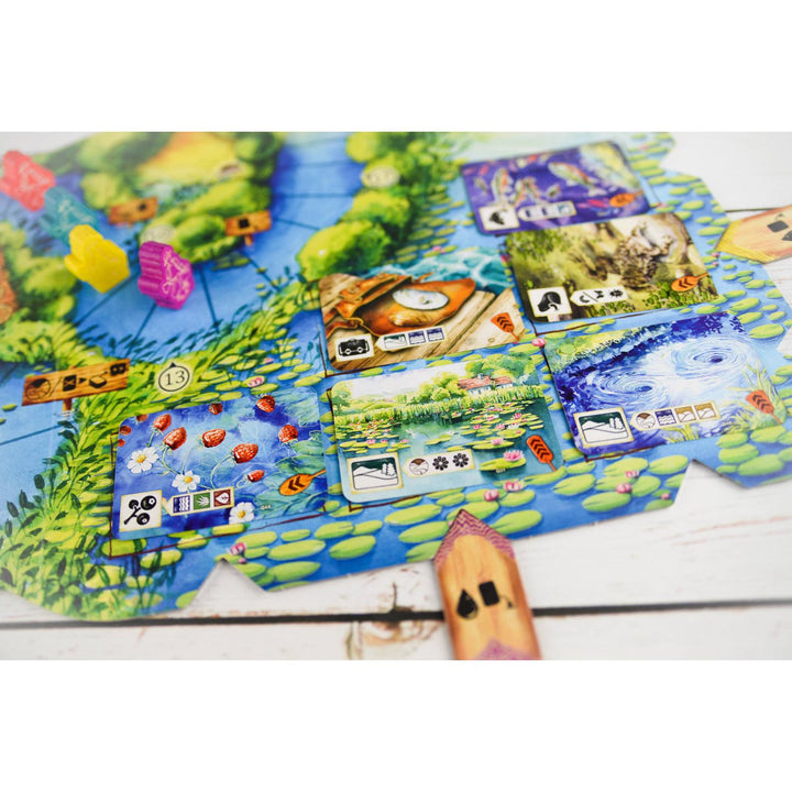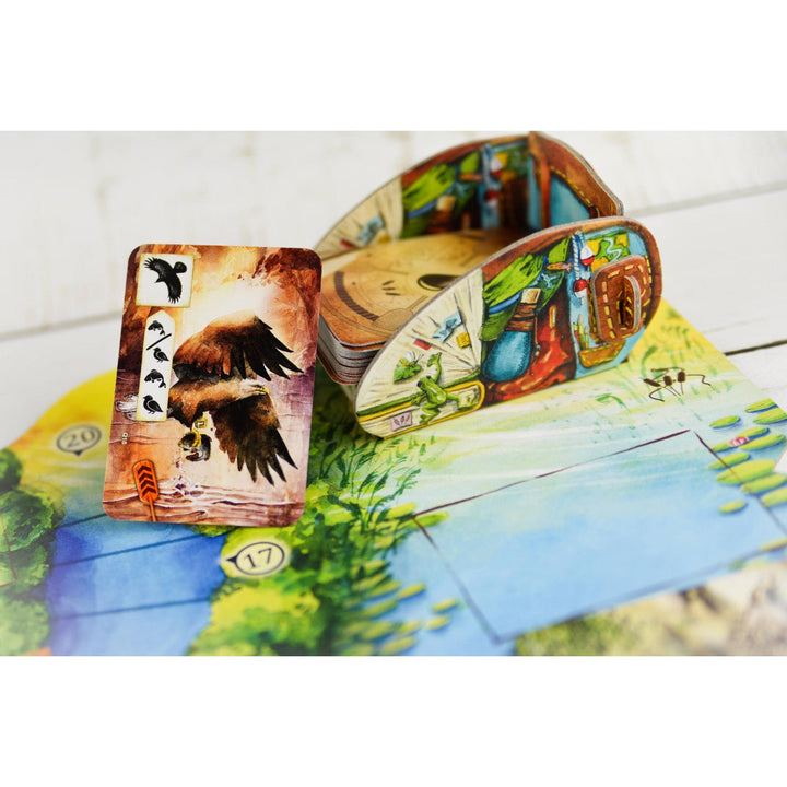 Meadow: Downstream includes over 80 new cards depicting wildlife living in an aquatic environment and a new thematic envelope to discover. Kayaking mechanism allows players to score extra points for progressing down the river. Adjust the level of competition with two-sided river board. Choose between a fast stream and calm river to explore two faces of nature.
