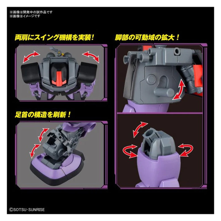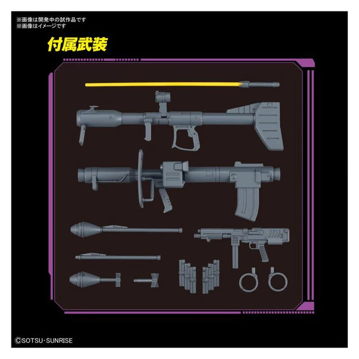 Now upgraded with new molds and part updates. The waist and arm parts are newly molded; the shape of the arm has been modified so that the connection between the shoulder and the forearm looks more natural, and the elbow joint structure has also been redesigned. A forward swing mechanism is now mounted on the connection between the shoulder and torso for improved posability; the impressive pose of wielding the Giant Buzz has now reduced the interference of each part for smoother posing. The hip now features a swing joint, too, and the range of motion in the legs has been greatly expanded by adding movable axes to the thigh connection, and updating the waist side armor. The internal frame of the ankles has also been changed to reproduce the Dom's characteristic crouching pose. Weapons such as the Giant Buzz, Raketen Buzz and Sturm Faust are also included. This one really is "the complete package"