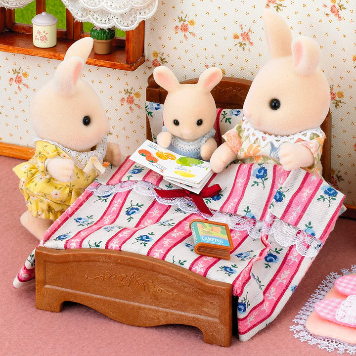 Kate Periwinkle likes romantic-looking rooms and decorates her rooms with lots of flowers and pictures. She wants the children to always keep dreaming, so she tells them stories and fairy tales about princesses and fairies. Kate is the nurse in Sylvanian Village. Everyone in the village admires how she skillfully prepares equipment and medicine while she works. She has put many toys and picture books in the waiting room and plays with them with the babies so that they don't get nervous while they wait.