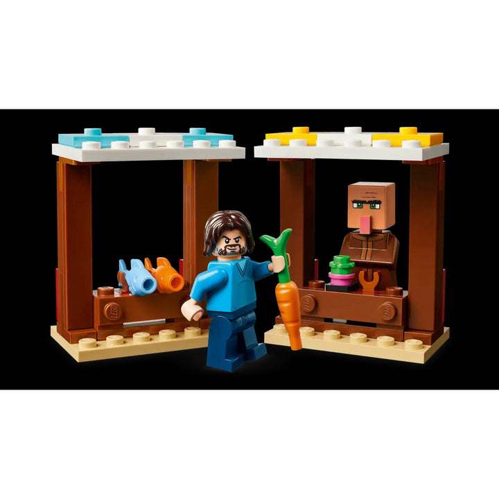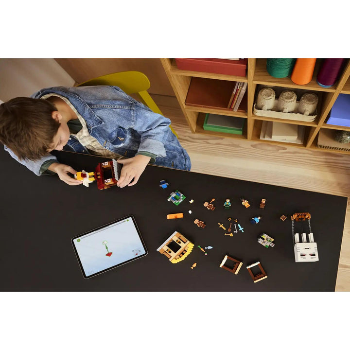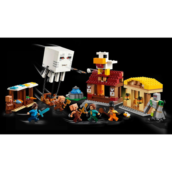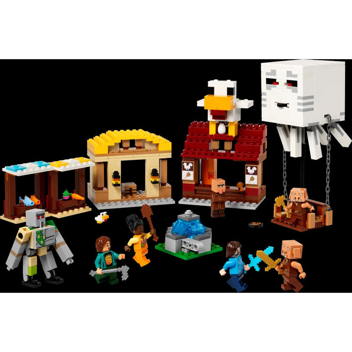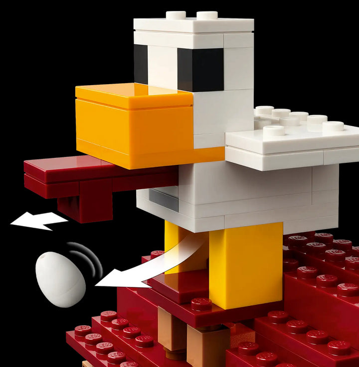 - Video game LEGO® set – When piglins launch missiles from their ghast balloon, causing the fountain to ’explode’, ki ds must defend the villagers and Steve's fried chicken restaurant and crafting shack