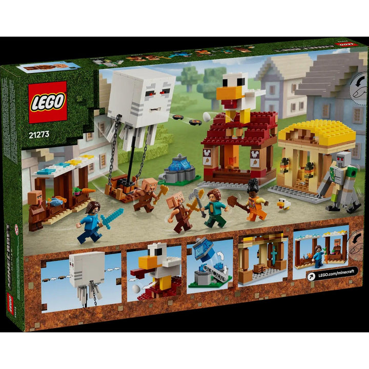 The Ghast Balloon Village Attack (21273) is a video game building set based on a scene from the Minecraft® movie. This high-quality LEGO® Minecraft toy for kids features explosive action when an attack is launched from a balloon, making this videogame LEGO set a great gift idea for boys and girls aged 10 and up. The set features popular characters from the video game: Steve, Natalie, Dawn, 2 piglins, a ghast balloon, villager, baby chicken and a posable iron golem figure. The balloon has room f or the piglins and incorporates a disc shooter. Set amongst the village are market stalls, Steve's fried chicken restaurant, his crafting shack and a fountain, which kids can ’explode’ using a built-in feature. The restaurant’s roof is topped witha large chicken model that includes a fun egg-laying function. For digital fun, the LEGO Builder app lets kids zoom in, rotate models in 3D and track their progress.