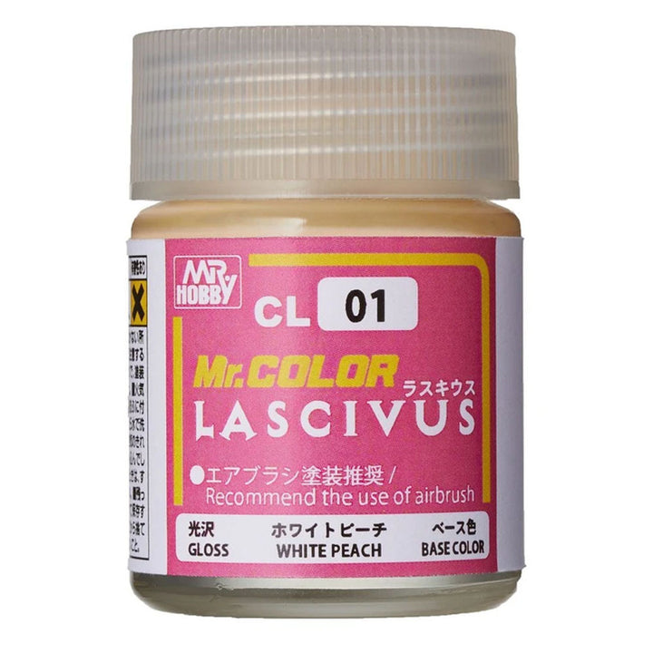 Mr Color Lascivus White Peach is a base coat in a new series of Mr Color specially developed to be used on the skin of the figures and plastic models of characters from Japanese anime, manga and games. CL01 and Cl02 are for base colour of skin. CL03, CL04 and CL05 are clear pigment paint for overcoat, recommended to be used to shadow in some areas, or to express tanned skin. This small range are also useful when painting RPG figures and busts if you are looking for a very smooth skin tone. Supplied in an 18ml screw-top jar.