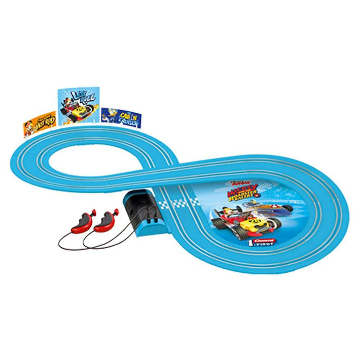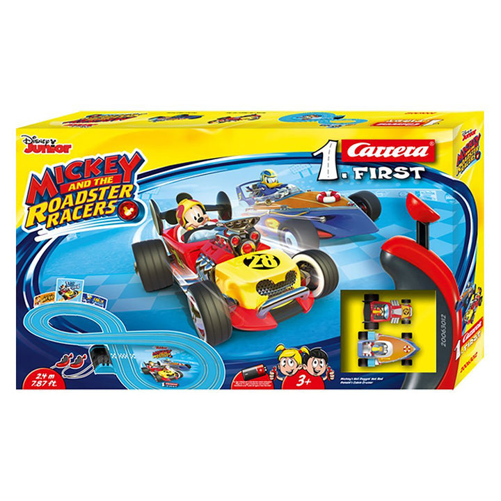 Description Zoom around the bends with the speedy new cars from Mickey and the Roadster Racers! The Carrera My First range of battery operated slot cars sets are the perfect introduction to the fun and exciting world of slot car racing.