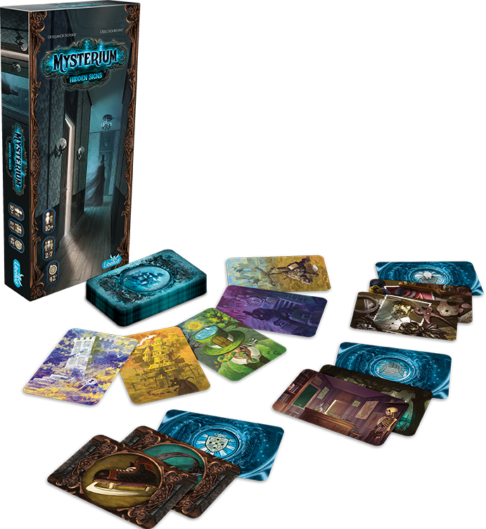 New information has come to light in the case of of the murder at Warwick’s Manor. Hidden Signs, Mysterium’s first card expansion, adds even more mystery and challenge to the investigation with 78 brand new cards. Suspects have been unveiled, locations revealed and new objects discovered, and the ghost has even more visions for the psychics to interpret. The combinations are endless, but the pressure remains to solve the case quickly so the ghost may rest in peace. Reenter the dreamworld of Mysterium and use your intuition to decipher new clues and find the truth in Hidden Signs.
