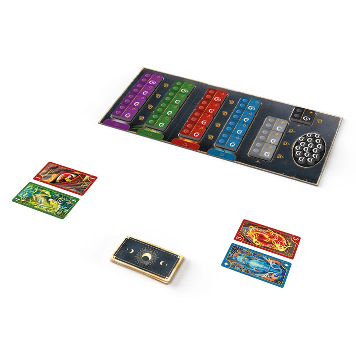 Mythicals is a tactical, risk-taking card-collecting game for 2 players. In this universe, each celestial creature holds the mastery of an element: water, air, earth or fire. Study these creatures before the sun rises and learn all their secrets, because the player with the greatest mastery of the elements at the end of the game wins!