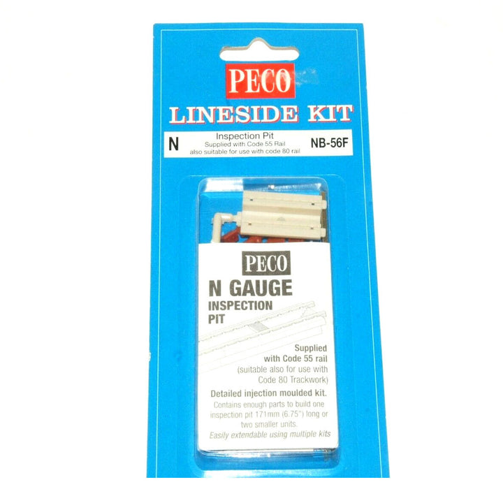 Modular design, makes it easy to assemble pits of any required length. Supplied with Code 55 rail, easy to use with Code 80 rail if required. A great addition to the NB-80 Modern Train Shed unit. Recommended to be used with: PECO Streamline and Setrack N Gauge Code 80 and Code 55 trackage systems, PECO N Quality Line Wagons.