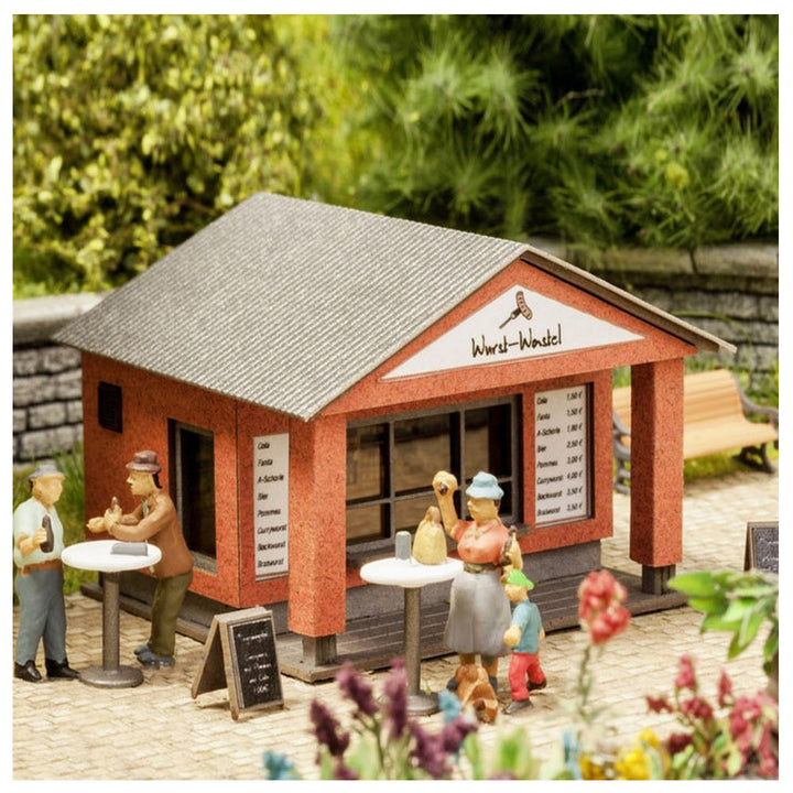 - Contents: Laser-Cut Kit "Takeaway", Figures Set "At the Coffee Shop" (item 15833, 6 figures and tables), 3 x Flowers in Pots, Laser-Cut "Paved Place"