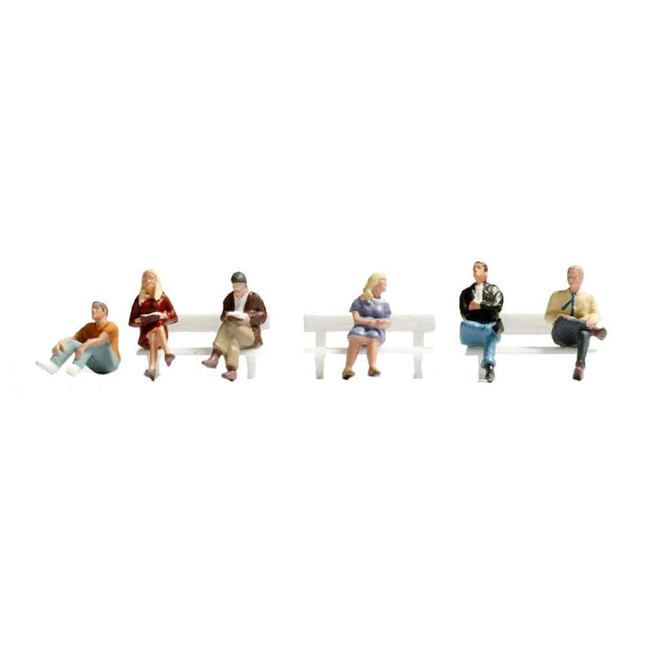Sitting people are available from NOCH in different designs. They add life to every model railroad scene and railway layout. Let them sit on chairs or benches, in parks, in shopping areas, in cafés or restaurants, waiting at stations or bus stops. NOCH also offers various benches matching these figures.