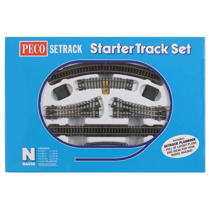This pack can be used in conjunction with the ST-301 N Setrack 2nd Radius Starter Track set to create a double track layout. PECO Setrack N Gauge Code 80 - Unit trackage System