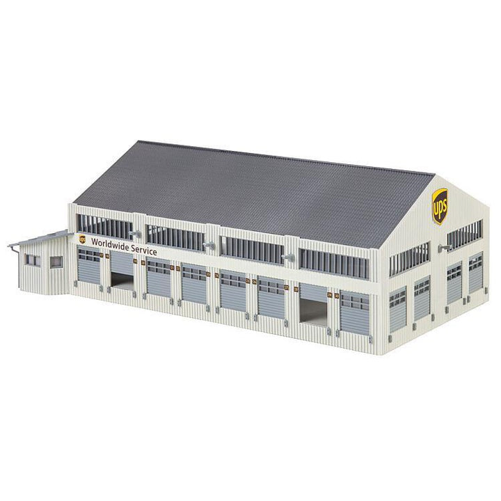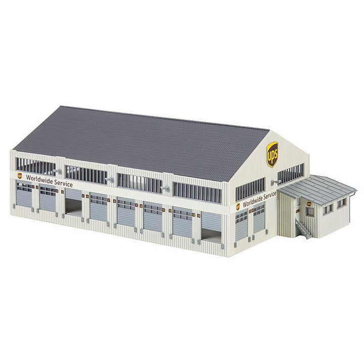 Efficient. Generous transport and storage capacities are offered by this single-storey construction with double pitch roof, trapezoidal sheet facade, strips of windows and annexed office of the »United Parcel Service of America, Inc.« offering Courier, Express and Parcel service. The smooth flow of arriving and leaving goods is ensured by 19 loading/unloading platforms fitted with rolling shutter doors, while up to 10 of them can be fixed in the open position. Expandable in length and width by juxtaposing several models.