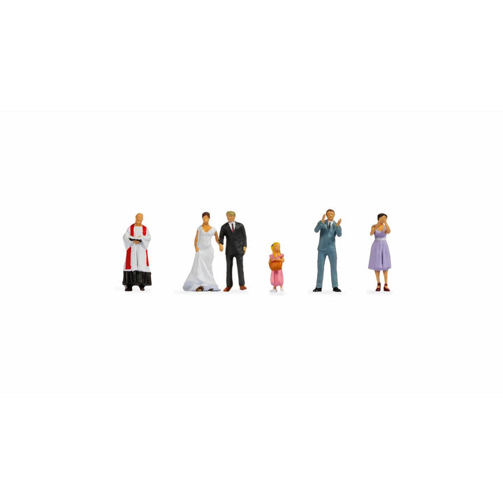 The NOCH Figures Set "Bride and Groom" is ideal for perfectly recreating a realistic wedding. A wedding is one of the loveliest shared experiences for many couples and an unforgettable day for all participants. Many guests – whether relatives, friends, acquaintances or colleagues – celebrate this great day together with the bridal couple. Eating, drinking, music and a great schedule make people happy together. The "Bride and Groom" can get married at a registry office and at a church by a priest. After the rings have been exchanged, the couple is married, and they can call themselves husband and wife! The flower girls drop a shower of beautiful flowers over the bridal couple as they exit the church. The wedding photographer captures the unforgettable moment in a lot of shots. What an unforgettable day for everyone involved!