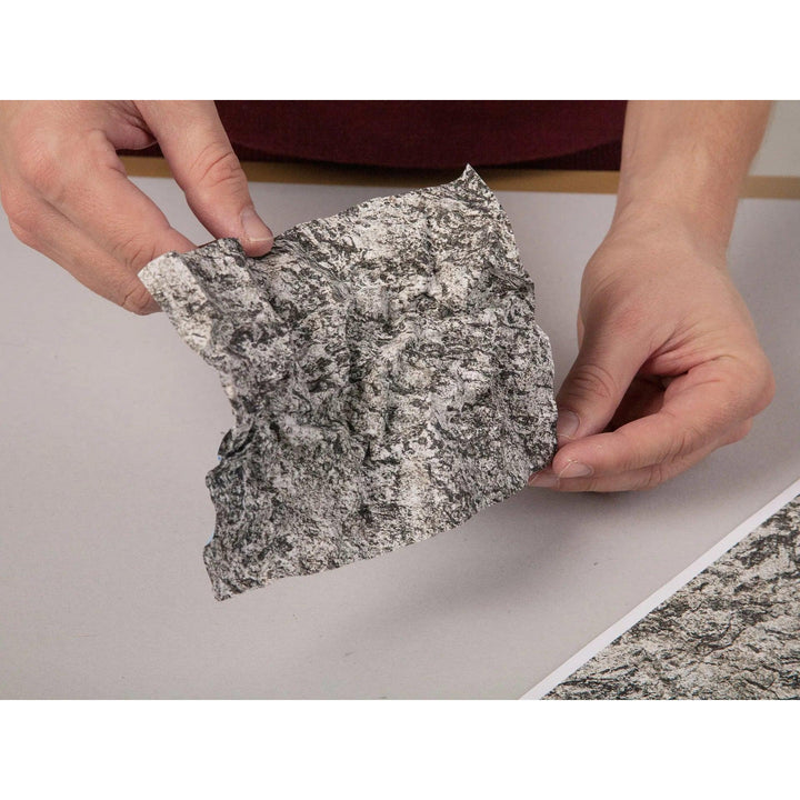 The Wrinkle Rocks “Großvenediger” make it easy to create super-realistic rocky sections in no time at all. The photorealistic rocks are printed on special paper, which is extremely robust and at the same time easy to wrinkle. Just don’t be afraid: the more fiercely and vigorously you wrinkle, the finer the textures become in the rock. And it looks really good!