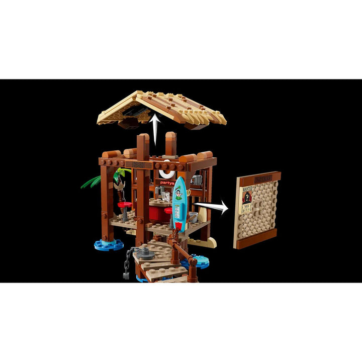 - Pretend-play toy – Kids can remove the roof of the beachside store to access a fun-filled interior and cross the jetty to set sail in a pirate boat