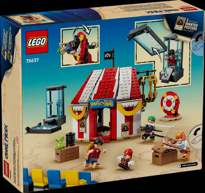 LEGO® ONE PIECE Buggy the Clown’s Circus Tent (75637) takes kids on a ONE PIECE circus adventure. This LEGO anime toy for boys and girls aged 8 and up has lots of accessories to help kids role-play their favorite scenes from the ONE PIECE live action series and to inspire them to create imaginative adventures of their own. The set comes with minifigures of Luffy, Zoro, Nami and pirate captain Buggy the Clown. The buildable tent can be flipped around to create a larger play area with detachable chair sections and Buggy's throne. There are 3 circus contraptions from which the heroes must escape: a water tank, spinning vertical table and a hanging cage. Inside the tent, boxes and barrels contain pieces that can be used to build a smaller version of Buggy. There are lots of cool weapons and accessories, including 2 'Wanted' posters. For added digital fun, builders can zoom in, rotate models in 3D and track their progress using the intuitive LEGO Builder app. Set contains 573 pieces.