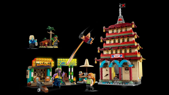 - Action-packed LEGO® pirate toy – Kids can tap the top of the pagoda tower model to explode it, enjoy target practice at the shooting gallery, put the villain inside the shark attack building, and more