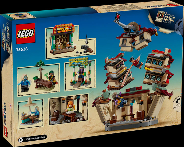LEGO® ONE PIECE Battle at Arlong Park (75638) is an interactive toy for kids who love action and adventure. Re-creating the epic showdown between the Straw Hat Pirates and the Arlong Pirates, this high-quality LEGO ONE PIECE set makes a great anime gift for boys and girls aged 9 and up. The building set comes with minifigures of Luffy – who comes with arm-lengthening pieces – Nami, Usopp, Arlong and Chu. Kids can collapse the pagoda model during battle by tapping it firmly on top, and the shooting gallery has fun targets for kids to aim at with stud-shooters. Villainous Arlong can be placed on a throne inside the shark attack building. Chu can get a drink at the shack, and the forest contains an iconic ketchup bottle. This playset also contains stud-shooters and accessories, including 3 'Wanted' posters. For added digital fun, builders can zoom in, rotate models in 3D and track their progress using the intuitive LEGO Builder app. Set contains 926 pieces.