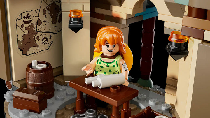 - LEGO® anime minifigures – The set comes with minifigures of Luffy, who comes with arm-lengthening elements, Nami, Usopp, Arlong and Chu