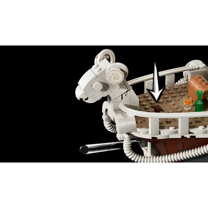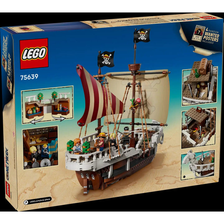 The Going Merry Pirate Ship (75639) is a beautiful model that is sure to captivate fans of ONE PIECE adventures and play-and-display building toys. This high-quality LEGO® building kit makes a great gift for boys and girls aged 10 and up and creative kids with a passion for the Straw Hat Pirates. The iconic ship has several interior spaces: a crew’s cabin, kitchen, storage, and an accessory workshop. The model comes with 5 LEGO ONE PIECE minifigures. Luffy sits on the sheep figurehead at the front of the ship, below which is a cannon; Zoro relaxes and trains on the deck; Nami controls the rudder at the rear, where her favorite tangerine trees grow on the deck; Usopp climbs the masts and keeps watch from the crow's nest; and Sanji takes pots down the stairs to the kitchen. Includes 4 'Wanted' posters. The LEGO Builder app lets kids zoom in, rotate models in 3D and track progress. Set contains 1,376 pieces.