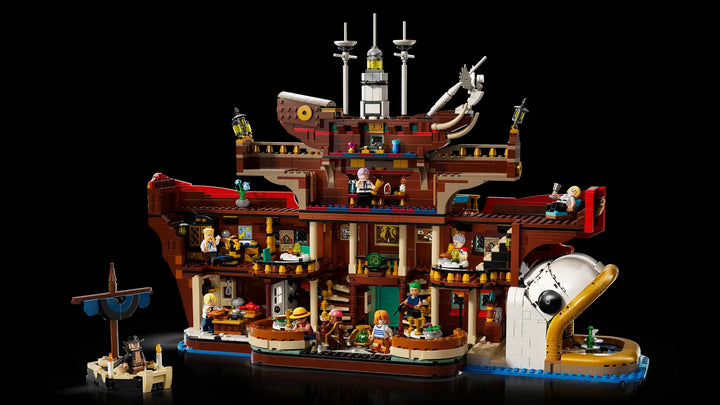 Enter the world of ONE PIECE with this authentically detailed LEGO® re-creation of the iconic Baratie Restaurant. Explore the multiroom, ship-shaped design, from the kitchen and dining areas to Zeff’s quarters and the treasure room. Relive classicmoments with 10 minifigures. Watch Zoro and Mihawk duel, while Sanji and Zeff argue by the kitchen. Perfect for any ONE PIECE fan or master builder.