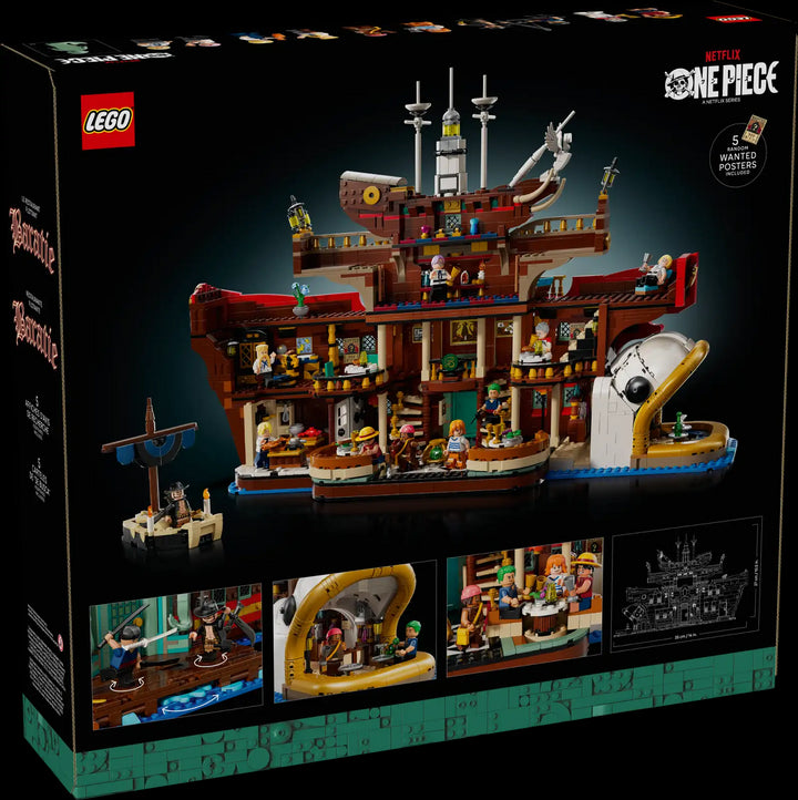 LEGO® ONE PIECE The Baratie Floating Restaurant (75640) re-creates the iconic setting of many ONE PIECE adventures. A great gift for adult fans of the ONE PIECE Netflix live action show, the model is packed with authentic details and an iconic cast of minifigures from the show. This impressive ship-shaped display piece contains many accessible rooms within its interior, including kitchen and dining areas, Zeff’s quarters and the treasure room. Classic scenes can be reproduced with the 10 LEGO minifigures: Luffy, Zoro, Nami, Usopp, Sanji, Zeff, Garp, Helmeppo, Koby and Mihawk. This kit also contains authentic accessories, including 5 'Wanted' posters. The LEGO Builder app lets users zoom in, rotate models in 3D and track progress as they build. The extensive LEGO Sets for Adults range offers model-builders an immersive and rewarding experience. Contains 3,402 pieces.