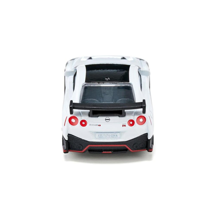 The Nissan GT-R Nismo is the ultimate super sports car for everyone who is into imposing design and power. The high-end model from Nissan, with more than 600 HP, promises pure aerodynamics and emotion. With its classic white metal bodywork, sport rims with rubberised tyres, sporting rear spoiler, and refined design details such as an all-round red line, it converts the street – and the playroom floor too – into a race track.